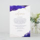Modernes, trendiges Hochzeitsdesign. Wasserfarbengeode mit Elementen der Digitalkunst, tiefblaue, lila Farbtöne, Rose Gold und Gold (Gold ist kein echtes Gold, sondern Farbe), Schwarz. Elegante Kalligraphie. Geometrische Elemente. Kühl, modern, kontrastvoll, gesättigt, bemerkenswert, einzigartig.