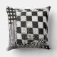 A warped checkered pattern with a collage of abstract geometric shapes.