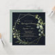 Diese geometrisch goldblaue Probe lädt zum Abendessen ein, bevor die Hochzeitsfamilie und Freunde das Abendessen einnehmen. Das Design besteht aus handbemalten, grünen Blätter, die in einem dunkelblauen Hintergrund gehalten sind und einen geometrischen Rahmen in Gold zieren.