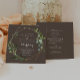 Diese geometrisch goldbraune Vorder- und Hinterzimmereinladung ist perfekt für eine Hochzeit. Das Design besteht aus handbemalten, grünen Blätter, die in einem dunkelblauen Hintergrund gehalten sind und einen geometrischen Rahmen in Gold zieren. Rett Papier, indem man mehr Details auf der Rückseite der Einladung anstatt auf einer separaten Gehäusekarte angibt.