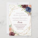 Diese geometrische Goldkalligrafie der spanischen Hochzeitsfeier eignet sich hervorragend für eine moderne Hochzeitsfeier. Das Design ist mit handgezeichnet Aquarell-lila, Marineblau, Rot, Bordeaux, Marineblau-Blume, grünen und goldenen Blätter, die einen eleganten geometrischen Rahmen schmücken.