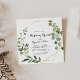 Diese geometrische goldene Tropenkalligrafie Hochzeitsbrunch Einladung ist perfekt für eine einfache Familie und Freunde Tag nach der Hochzeit zusammenkommen Brunch. Das Design besticht durch handbemalte grüne Blätter, die einen goldenen geometrischen Rahmen schmücken.