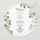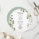Dieses geometrische goldgrüne Hochzeitsprogramm ist perfekt für eine einfache Hochzeit. Das Design besticht durch handbemalte grüne Blätter, die einen goldenen geometrischen Rahmen schmücken.