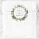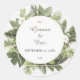 Ein runder Kranz aus verschiedenen Blätter und Blattwerk ist der Schwerpunkt auf diesem Aufkleber, der auf Gefälligkeiten oder als Dankeschön eingesetzt werden kann. Ideal für Hochzeiten im Freien, Brautparty oder andere Veranstaltungen. Verfügbar mit passenden Produkten.