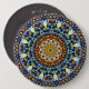 Ein kolossal dimensionales Knopfbild mit einem geometrisch kaleidoskopischen Mandaladesign mit 12 Blütenblättern wie den 12 Zodiakzeichen, ursprünglich basierend auf einem Foto aus Herbstblättern und Kies (ich nahm mich selbst), sodass das Design viele der kleinen Details und Nuancen dieser natürlichen Dinge beinhaltet. NB Dieses Design kann individuell angepasst werden, es ist auch als kleinere Knopfgröße Abzeichen erhältlich.
