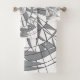 Bath Towel Set carrying a geometric mandala pattern design. The color of the pattern and the background can be changed to your preference, using Zazzle's editing tool.