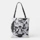 Tote bag carrying an abstract geometric mandala pattern design. The color of the pattern and the background can be changed to your preference, using Zazzle's editing tool.
