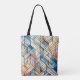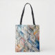 This Geometric Mosaic tote bag will bring a sophisticated, artistic edge to your daily routine. Featuring an intricate, stained-glass inspired pattern in a versatile palette of earth tones and cool blues, it is the perfect blend of everyday durability and high-end style.