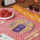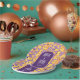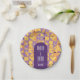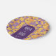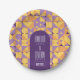 Einfache und Retro Vibes Papier Teller für Herbst Jahreszeit Hochzeit. Mit geometrischen Mustern in beruhigenden Farbtönen lila, orange und gelb bringt dieses Design eine raffinierte und dennoch nostalgische Touch zu Ihrem besonderen Tag. Ideal für Paare, die das Wesen des Herbstes mit einem stilvollen und einzigartigen Ambiente erleben möchten. Dieses Template ist leicht zu personalisieren und ideal für jede Herbsthochzeit, es verleiht Ihnen Wärme und Eleganz.