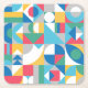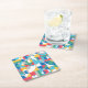 A cardboard coaster with a geometric shapes design.