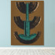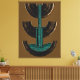 Original digital abstract, this piece pairs tactile, brushlike textures and concentric ring forms with a bold vertical teal stroke to create a modern, sculptural composition. Warm golds and ochres contrast the cool teal to produce a refined, mid-century-friendly palette that works well in contemporary and eclectic interiors.
