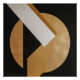 Eine abstrakte Komposition, die einen goldenen Kreis, ein dunkles Dreieck und einen weißen Streifen in elegantem Kontrast vereint. Das Kunstwerk vermittelt ein Gleichgewicht zwischen Kraft und Subtilität, erforscht den Dialog geometrischer Formen, Licht und Schatten und ruft Modernität und zeitlose Eleganz hervor.