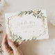 Cette verdure dorée géométrique devine combien de carte de jeu est parfait pour une douche nuptiale moderne ou baby shower. Le design se compose d'un magnifique cadre géométrique doré avec d'élégants feuilles verts.
