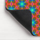 Ein ansprechendes geometrisches Muster/Design in Rot-, Blau-, Grün-, Gelb- und lila-Tönen mit einer Blume wie Motiv.