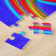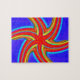 Ein ansprechendes geometrisches Muster oder Design, vorwiegend in Rot- und Blautönen, aber auch in Gelb-, Zyan-, lila- und Grüntönen.
