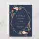 Ein Navy Blau und Bordeaux Floral Design mit einem goldenen geometrischen Rahmen mit Text in der Mitte. Sie können den Wortlaut, die Textgröße, die Farbe und den Schriftart dieser Vorlage ändern.