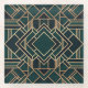 Dieser Art-Déco-Untersetzer in Grün und Gold würde unter jedem Trinkbehälter atemberaubend aussehen, mit einer inspirierten Dekoration im Jazzzeitalter