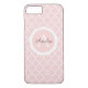 Ein hübsches, rosa und modernes personalisiertes Handy-Gehäuse mit einem Quarrefolienmuster im Hintergrund. Fügen Sie Ihr Monogramm und Ihren Namen hinzu. Entworfen für Sie von BlackBerry Boulevard.