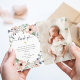 Diese Taufkarte mit einem Kranz aus hübschen pfirsichfarbenen und rosa Aquarellfarben-Blume mit blauen und grünen Blätter, mit einem geometrischen Imitat und einem goldenen Imitat-Look in der Mitte. Der Hintergrund der Karte ist weiß. Das Foto Ihres Babys wird auf der Karte angezeigt.