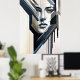 Eine abstrakte Darstellung der femininen Form, in der Linien und geometrische Formen zusammenkommen, um eine Figur voller Eleganz und Rätsel zu schaffen.
