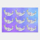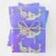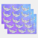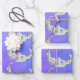 Dieses Set aus umhüllenden Papierblättern haben hübsche abstrakte, halbmondfarbene Monde mit leuchtend bunten geometrischen Formen, wie Dreiecke, Kreise und Rollen in blauen, lila und gelben Farbtönen auf einem lila und blauen Himmelshintergrund mit Sternen.