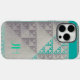 Dieses Gehäuse hat ein modernes trendiges Design mit geometrischen Formen / Dreiecken in Türkis / Braun / Beige Farbtönen. Das Monogramm auf dem Fall ist ein Template-Objekt und kann leicht in das gewünschte Objekt geändert werden. Wenn Ihnen kein Text gefällt, löschen Sie ihn bitte.