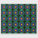 Geometrisches und farbiges Muster, Regenbogenfarben symmetrische Formen auf schwarzem Hintergrund