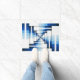 Texturgrafisches Design mit sieben aufeinander folgenden geometrischen Schichten in Blautönen.