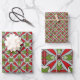 Geometrischer Rot- und Grünurlaub Geschenkpapier Set