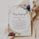 Diese geometrische, rustikale vergoldete Empfang-Karte eignet sich hervorragend für ein modernes Party nach der Entwicklung. Das Design verfügt über handgezeichnet Aquarell lila, Marine, rot, bordeauxrot, Marineblastiche Blume, grün und gold Blätter Glitzer an einem eleganten geometrischen Rahmen. RSVP Karten werden separat verkauft.