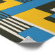 Ein auffallendes geometrisches abstraktes Design mit überlappenden Rechtecken und Quadraten in fett gelb, lebendig blau, tiefschwarz und weich cremefarben. Das Layout verbindet solide Farbblöcke mit gestreiften Schnitten und schafft so Rhythmus und Bewegung über die Komposition hinweg. Starke Kontraste und saubere Linien verleihen dem Kunstwerk einen modernen, dynamischen Look, der es perfekt für zeitgenössische Dekoration, Drucke oder stilvolle Hintergründe macht.