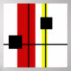 Moderne Kunst abstraktes geometrisches Design mit schwarzen, roten, gelben Linien und schwarzen Quadraten auf weißem Hintergrund