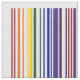 Stilvolles geometrisches Gewebe kennzeichnet einen Barcodeentwurf mit zwei Regenbogen, die von den Paaren der farbigen Streifen gemacht werden, die UPC-Zahlen entsprechen. Meinen Aussenseiter an erhalten, entsprechen die Zahlen den Buchstaben "im Regenbogen", um einen doppelten Regenbogen zu machen. Da Barcodes nur 12 Zahlen lang sind, ließ I das "r" durch den roten Anfang und die mittleren Streifen dargestellt werden. Die Reihenfolge beginnt auf dem links mit Rotem, Orange, Gelbem, Grünem, Blauem, Indigo und Veilchen. Zwei Streifen roter Aufschlag als Teiler in der Mitte und dann die Farben gehen vom Veilchen zurück zu Rot für einen ausgeglichenen Blick.
