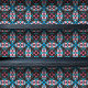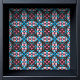 Die geometrische Tapete zeichnet sich durch einen kleinen Ausdruck aus weichen Pinseln, lebendiger Blues, tiefbraunen und schwarzen Konturen aus. Der Druck weist Details auf, die an Buntglas erinnern. Dieses Muster kann zwar an den Wänden verwendet werden, ist aber Teil einer Sammlung von Abziehbildern, die speziell für die Auskleidung von Schubladen, die Rückseite von Regalen und andere Möbelflächen hergestellt wurden.