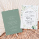 Diese geometrische goldene Eukalyptus-Vorder- und Rückseite der Hochzeitseinladung ist perfekt für eine rustikale Hochzeit. Dieses künstlerische Design besticht durch handgezeichnet Aquarellgold und grünes Blattwerk, das einen geometrischen Rahmen schmückt und die natürliche Schönheit inspiriere. Rett Papier, indem man mehr Details auf der Rückseite der Einladung anstatt auf einer separaten Gehäusekarte angibt.
