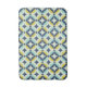 Dieses moderne Muster der Mitte des Jahrhunderts kennzeichnet Gold und blaue Formen.