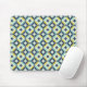 Dieses moderne Muster der Mitte des Jahrhunderts kennzeichnet Gold und blaue Formen.