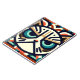 Ein stylisiertes, graues Katzengesicht in einem gewagten geometrischen Design mit aquamarinen, cremefarbenen und orangefarbenen Tönen - perfekt für Katzenliebhaber mit Einstellung und einer Liebe für sonderbare Kunst.