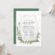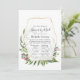 Waldgrün Langstreckenbaby oder Brautparty per Post Einladung mit wilden Kräuter, Farne, Blätter und Eukalyptus mit goldenem geometrischem Rahmen.