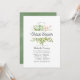 Trendige virtuelle Baby- oder Brautduscheinladung mit goldenem geometrischem Rahmen und schläfengrüner Wasserfarbe rückwärts.