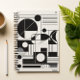 Mit diesem atemberaubenden geometrischen Notizbuch-Design steigern Sie Ihren Alltag. Die saubere, strukturierte und mühelos künstlerische Gestaltung in Schwarz und Weiß zeichne Inspiration aus dem Bauhaus und den modernen Stilen der Mitte des Jahrhunderts. Der Mix aus Kreise, Linien, Blöcken und Kurven fühlt sich bewusst und intelligent an - perfekt für kreative Köpfe, Denker, Architekten und jeden, der scharfes Design schätzt. Egal, ob Sie journalistisch, im Brainstorming oder einfach nur in Ihrem täglichen Leben spielen, dieses Notizbuch bringt Ordnung und Kreativität auf einzigartige Weise zusammen. Modern, minimalistisch und voller visueller Rhythmen - es ist mehr als ein Notebook, es ist ein tragbares Kunstwerk.