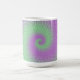 Treffen Sie eine **kühne Aussage** mit diesem auffallenden geometrischen Spiraldesign. Das Kunstwerk zeigt geschichtete, strahlenförmige Spitzen, die den Blick nach innen ziehen, und kombiniert sanfte Farbverläufe in Lila und Mintgrün vor einem dramatischen schwarzen Hintergrund. Das Ergebnis ist ein faszinierender, fast hypnotischer Effekt, der sich sowohl modern als auch dynamisch anfühlt.
