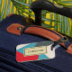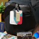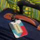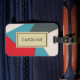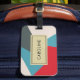 Modernes geometrisches, abstraktes Design im Stil der Mitte des Jahrhunderts mit individuellem Namen. Das Gepäckschild wird durch die Farben Rot, Blau, Dunkelgrau, Hellgrau, Beige und Sand hervorgehoben. Stilvoll und auffällig.