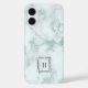 Das elegante mit Monogramm Gehäuse aus Marmor mit gemustertem Hintergrund in blassfarbenen Farbtönen und Weihrauchgrün. Fügen Sie Ihr Single ein Monogramm in schwarz, umgeben von einem dünnen geometrischen Rahmen.