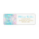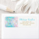 Die geometrischen Würfel sind in einem Muster angeordnet und in wechselnden Pastellblau-, Rosa- und lila-Farbtönen gefärbt, was ihm einen strahlenden Glashimmel verleiht. Die Formen sind in Imitaten Gold Glitzer umrissen.