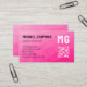 Geometrisches geometrisches Muster QR-Code Monogram Business Card. Personalisieren Sie es mit QR-Code, Monogramm, Beruf, Kontakten und weiteren Geschäftsinformationen. Elegantes, modernes, geometrisches Dreieck mit Hot-Pink-Ober-Farbverlauf.