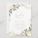 Dieses geometrische, goldfarbene, fallende Geschlecht zeigt die Party Einladung und ist perfekt für ein modernes Babygeschlecht. Das Design zeichnet sich durch einen goldfarbenen geometrischen Rahmen mit eleganten grünen Blätter aus.