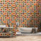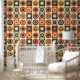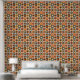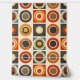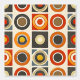 Dieses Kunstwerk zeichnet sich durch ein lebendiges und kühnes Muster von konzentrischen Kreisen und Quadraten aus, die in einem strukturierten Rasterformat angeordnet sind. Das Design präsentiert eine inspirierte Farbpalette mit warmen Orangen, tiefbraunen, gelben und cremefarbenen Orangen, die ein nostalgisches und dennoch modernes Ambiente schafft. Jeder Kreis ist perfekt in seinem Quadrat zentriert, wobei die sich wiederholenden Muster eine rhythmische und ausgewogene Komposition erzeugen. Die Verwendung starker, kontrastierender Farben und geometrischer Formen verleiht dem Stück ein dynamisches und visuell ansprechendes Aussehen, das an das moderne Design der Mitte des Jahrhunderts erinnert.