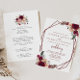 Diese geometrisch rosa Blumenfront und die hintere Hochzeitseinladung sind perfekt für eine elegante Hochzeit. Die Blume sind bordeauxrot, rosa, rot und grün, die künstlerische Schönheit wird inspiriert. Rett Papier, indem man mehr Details auf der Rückseite der Einladung anstatt auf einer separaten Gehäusekarte angibt.