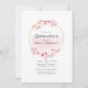 Rosa Blütenfeder Quinceanera laden mit Sakurenblüte mit goldenem geometrischem Rahmen ein, der auf Ihre Veranstaltungsspezifikationen zugeschnitten ist.